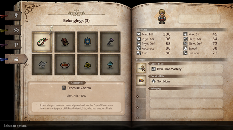 So könnt ihr zu Beginn eine Meisterschafts-Fähigkeit auswählen mit drei verschiedenen Ausrichtungen Angriff, Heilung und zum Schwächen des Gegners.Im nächsten Schritt wählt ihr ein bevorzugtes Gericht bzw. Speise ,welches euch für Kämpfe einen Bonus verschafft und ihr es auch noch selber bennenen dürft und 3 Habseligkeiten die wiederum eure Attribute verbessern oder ein im Spielverlauf, nicht näher beschriebenes Element freischaltet oder euch ein zusätzliches Gericht zur Verfügung stellt, welches ihr nutzen könnt um eure Fähigkeiten im Kampf temporär zu steigern und zu guter letzt dürft ihr euren Charakter natürlich wie üblich in einem Charaktereditor benennen. Nach Fertigstellung eures Charakters bekommt einen ersten Einblick in die Hauptstory und euch werden die 3 Kontrahenten innerhalb der Story vorgestellt, die die Begierden und Meister von Reichtum, Macht und Bekanntheit darstellen ,die nach den Ringen trachten die eine dunkle Gottheit versiegelt und ausgerechnet einer dieser Ringe befindet sich in eurem Heimatdorf, was leider die Folge hat das wie es bei solchen Bösewichten auch nicht anders sein kann das eure Heimat vollständig zerstört wird und ihr unweigerlich, als vermutlich unbescholtener Bürger in die Geschichte hineingezogen werdet. Woraufhin wir auch zum nächsten Punkt kommen, eure Begleiter ,Stia die einzige euch bekannte Überlebende nach dem Überfall die euch zur Seite stehen kann und euch auch beibringt wie man Gebäude erbaut und man die nötigen Materialien aufsucht ,die sich überall in der Spielwelt finden lassen. Was dann auch schon das nächste neue Feature in Octopath Traveler 0 darstellt. Der Einstieg fällt auch bei den Neuerungen sehr einfach ihr bekommt Infoscreens zu so ziemlich allem womit ihr beginnt und es wird euch alles in einfachen Sätzen Schritt für Schritt erklärt, sodass am Ende kaum eine Frage offenbleiben dürfte. Obwohl das Spiel eigentlich die Geschichte vielleicht nicht besonders gut visuell vermitteln kann für den einen oder anderen Spieler, aufgrund der inspirierten Oldschool 2D Grafik ist die Story sehr düster und lässt einen erschaudern ,wenn man darüber nachdenkt ,wenn es übertragbar wäre auf unsere Gegenwart. Umso wichtiger das unsere Protagonisten nicht tatenlos bleiben und Osterra zumindest einen kleinen Blick in die Machenschaften der Unterwelt gewähren und wir einen klitzekleinen Spalt einer Blackbox öffnen die sich auftut.